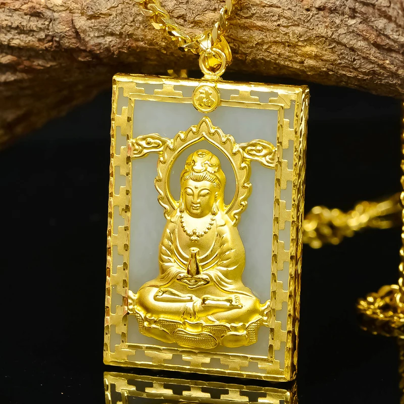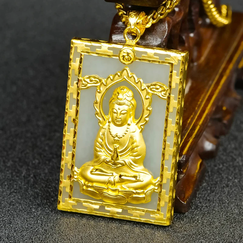 Best . (0% Off) Buy Jewelry Pure Gold Plated Guanyin Pendant Gold Inlay and Tianyu Pendant Men s Gold and Tian Baiyu Jade Pendant Cheap Online.