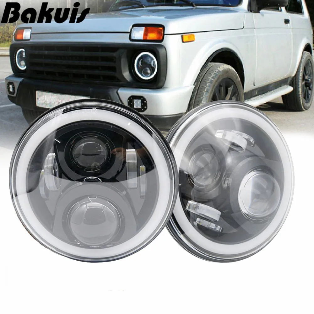 Special Offer 7Inch LED Headlamps with Halo Ring Amber Turn Signal For lada niva 4x4 suzuki samurai 7\" LED DRL Halo Headlights For VAZ 2101 Discount 16% Today!