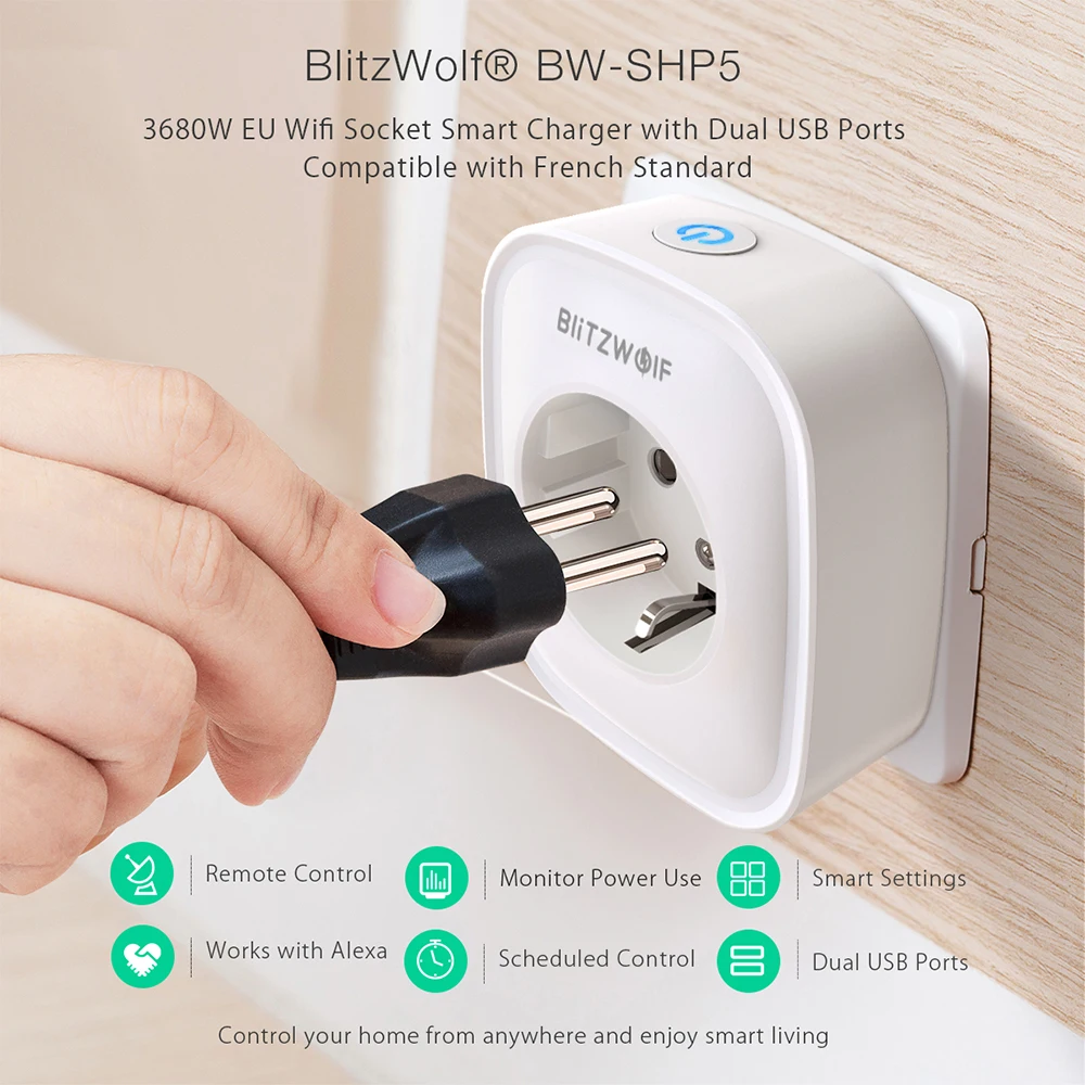 Best . (28% Off) Buy BlitzWolf BW SHP5 WIFI Smart Home Socket EU Plug 2.1A Dual USB Ports 16A Work with Amazon Alexa Google Assistant IFTTT Tuya APP Price Online.