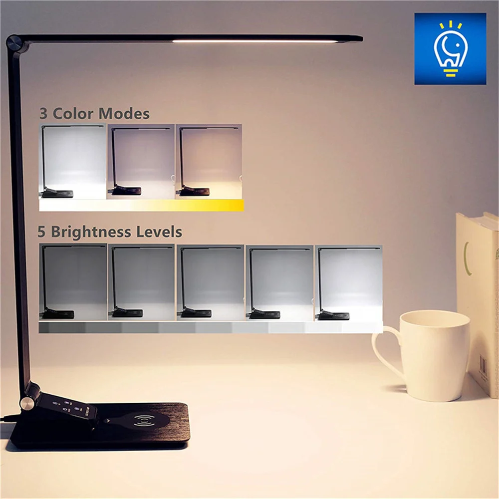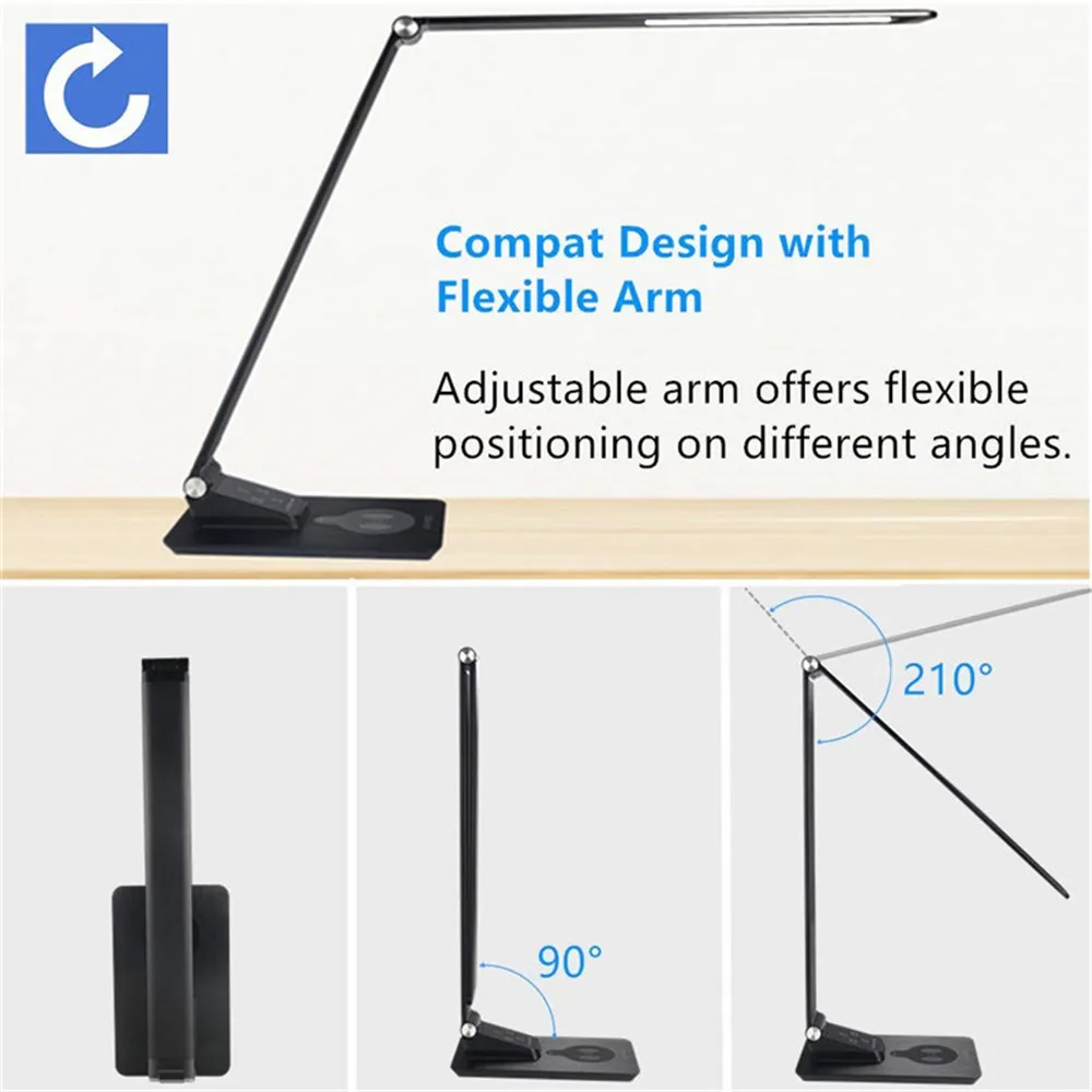 Best . (30% Off) Buy Desk Lamp with Wireless Charger,USB Charging,5 Brightness 3 Color,Adjustable Table Lamp for Office,Bedroom or Dorm,Black,7W Cheap Online.