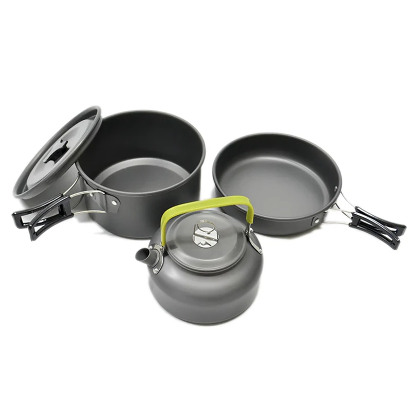 Best . (30% Off) Buy Ultra light Aluminum Alloy Camping Cookware Utensils Outdoor Cooking Teapot Picnic Tableware Kettle Pot Frying Pan 3pcs Set Price Online.