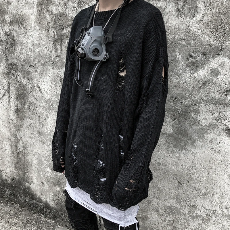 Best . (35% Off) Buy Black Red Striped Hole Knit Sweaters Autumn Winter Sweater Fashion Long Paragraph Oversized Jumpers Men Women All match Clothing Price Online.