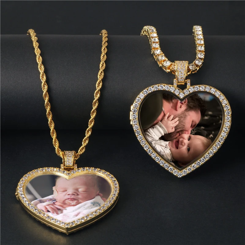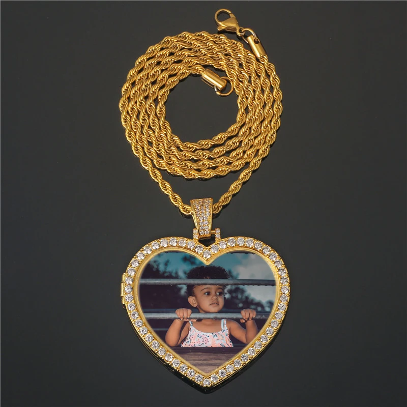Special Offer Custom bling bling Heart Photo Medallions Necklace Pendant copper with tennis chain Gold Cubic Zircon Men s Hip hop Jewelry Discount 40% Today!