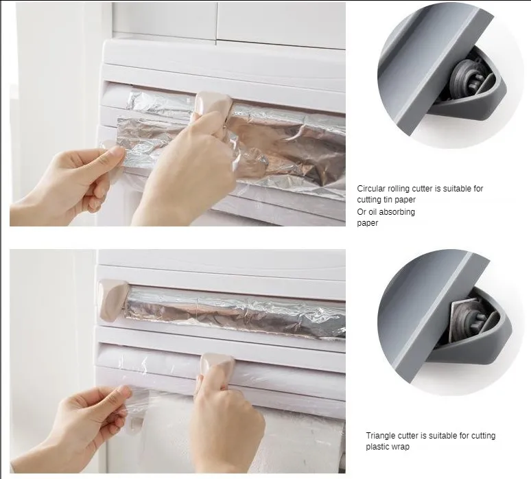 Special Offer Kitchen Plastic Wrap Storage Rack with Cutter Aluminum Foil shao kao zhi Storage Shelf Towel Kitchen Shelves Hole Punched Discount 41% Today!