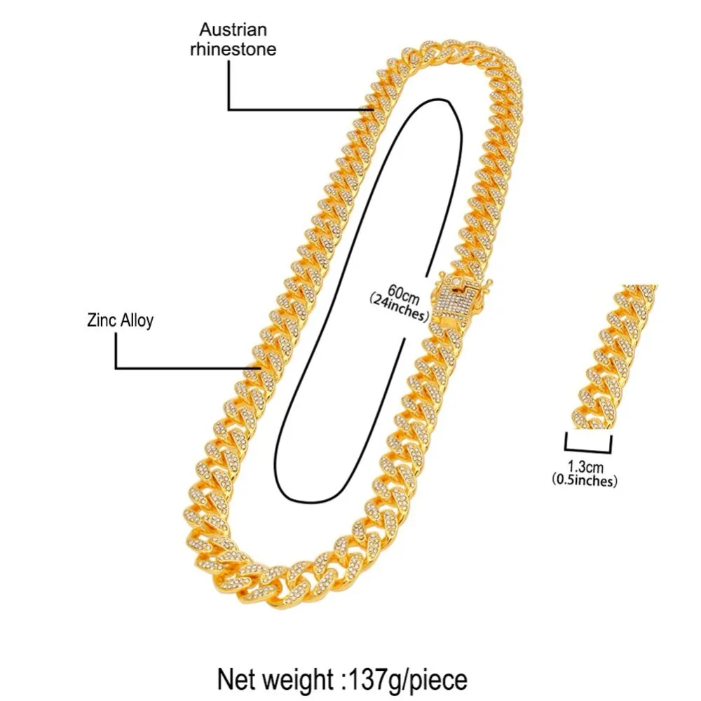 Special Offer THE BLING KING Miami Cuban Link Chain Necklace 13mm Full Bling Bling Iced Out Rhinestones Gold Color Fashion Jewelry Necklace Discount 43% Today!