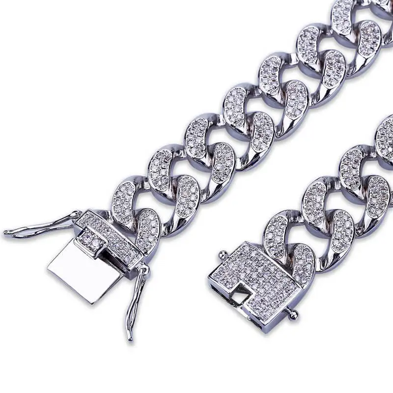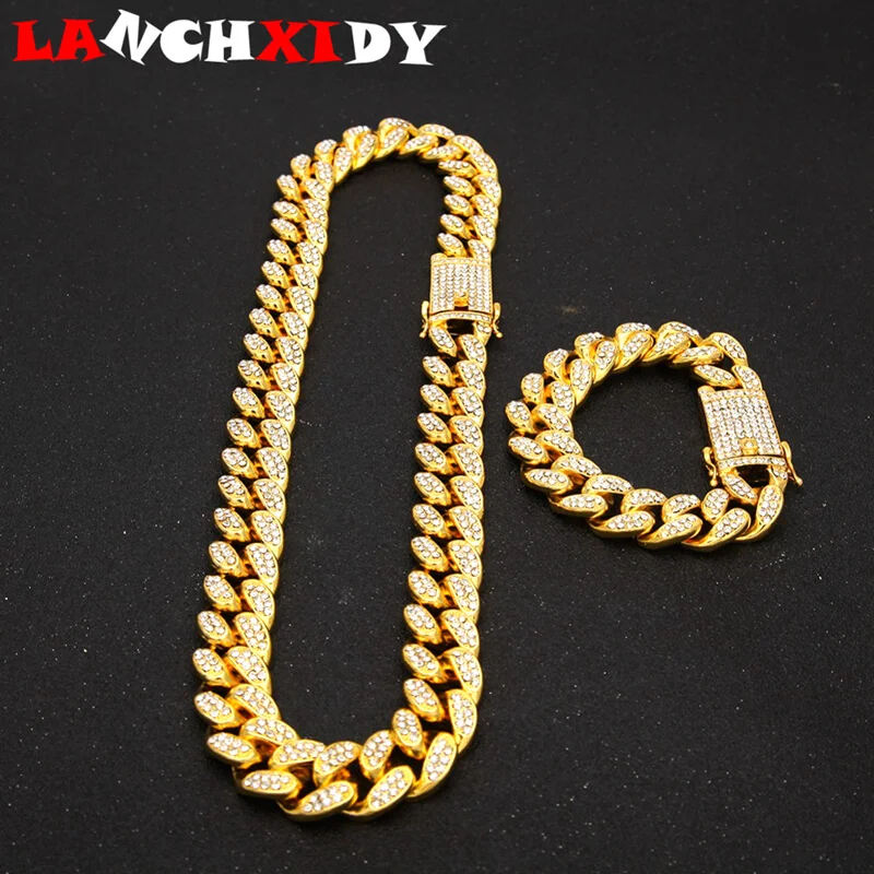 Special Offer Full inlaid zircon Miami Cuban necklace + bracelet 12mm wide butterfly buckle Crystal hot SELLING men hip hop tide brand jewelry Discount 45% Today!