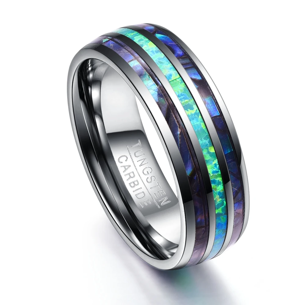 Special Offer Nuncad 8MM Wide Polished Abalone Shell tungsten carbide rings Dome Triple Grooved opal Tungsten Steel Ring never fade T082R Discount 50% Today!