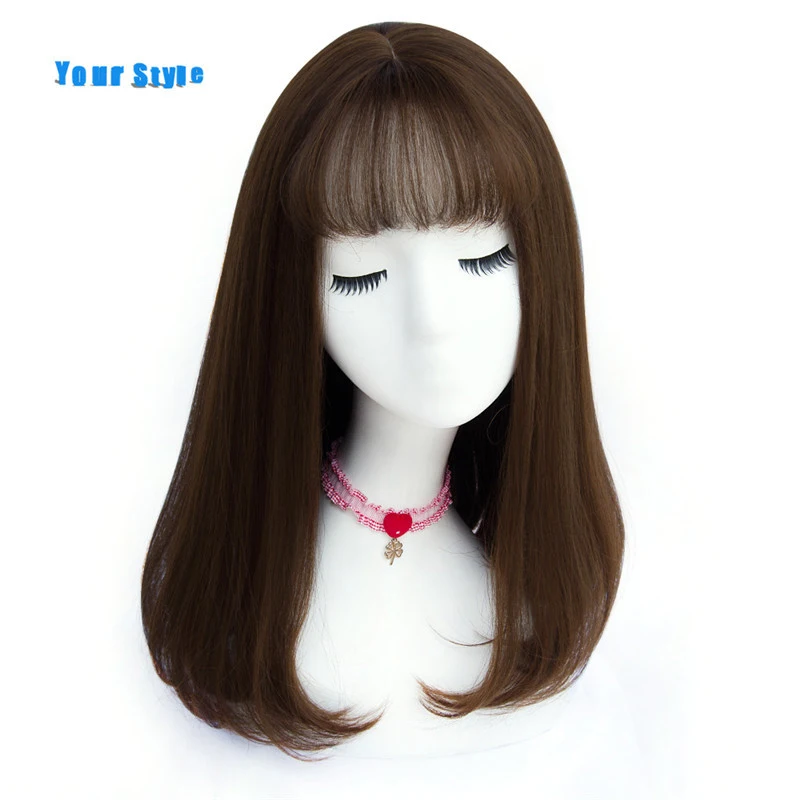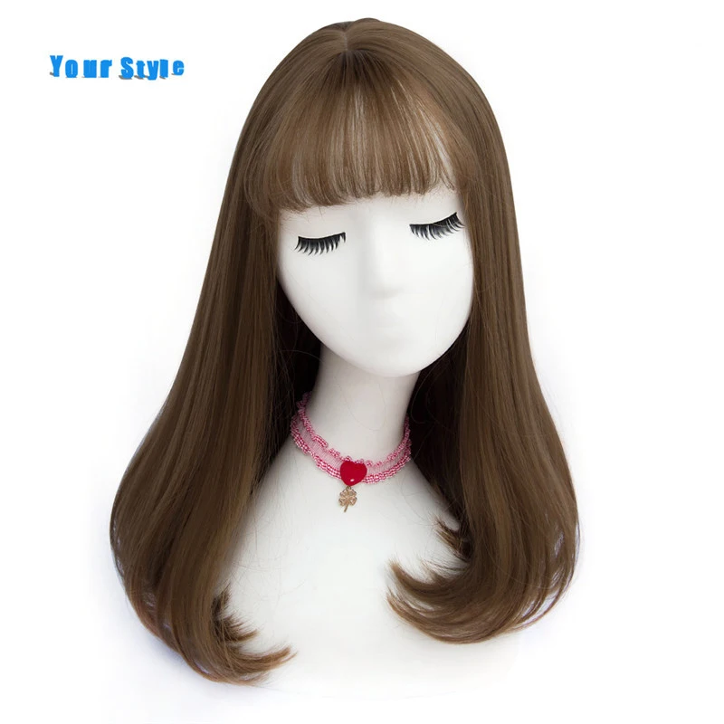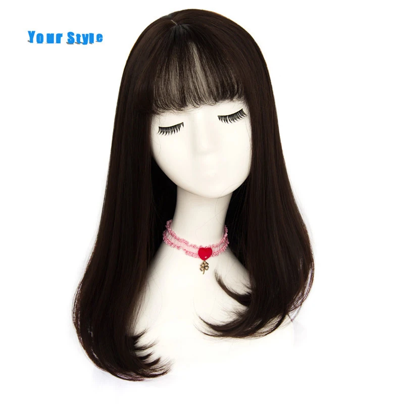 Special Offer Your Style 45 Colors Synthetic Long Straight Natural Hair Wigs With Bangs Womens African American Hair Brown Gray Color Discount 50% Today!