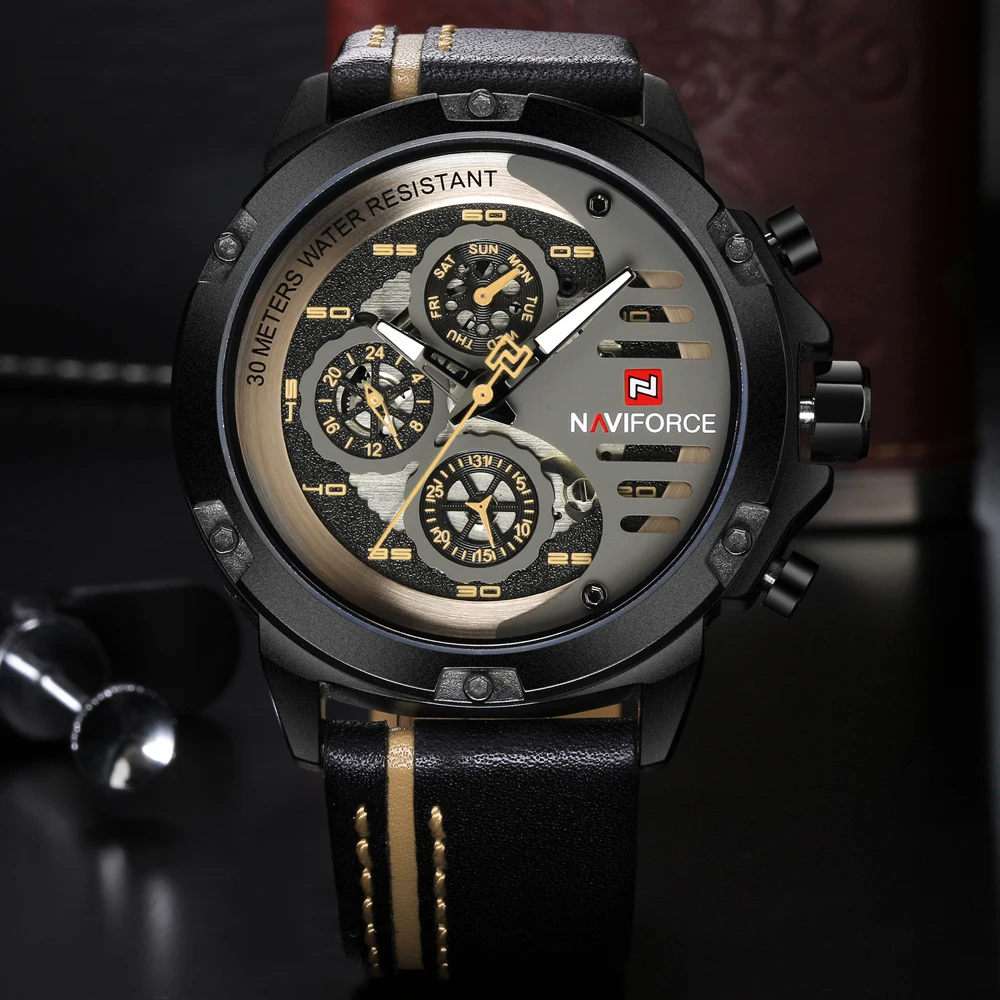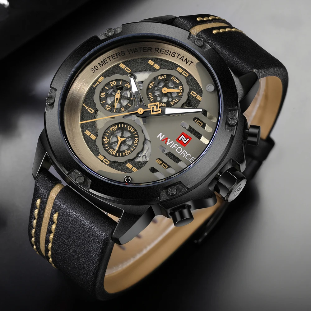 Best . (59% Off) Buy NAVIFORCE Watch Men Fashion Casual Quartz Watches 12 24H Day and Date Display Wristwatch Leather Waterproof Relogio Masculino Cheap Online.