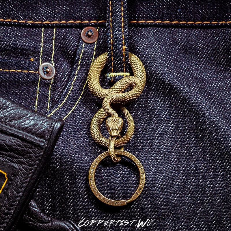 Special Offer Coppertist.Wu snakes bronze keychain brass handmade key chain gold fashion animal snake key ring HandBag Pendant punk rock Discount 0% Today!