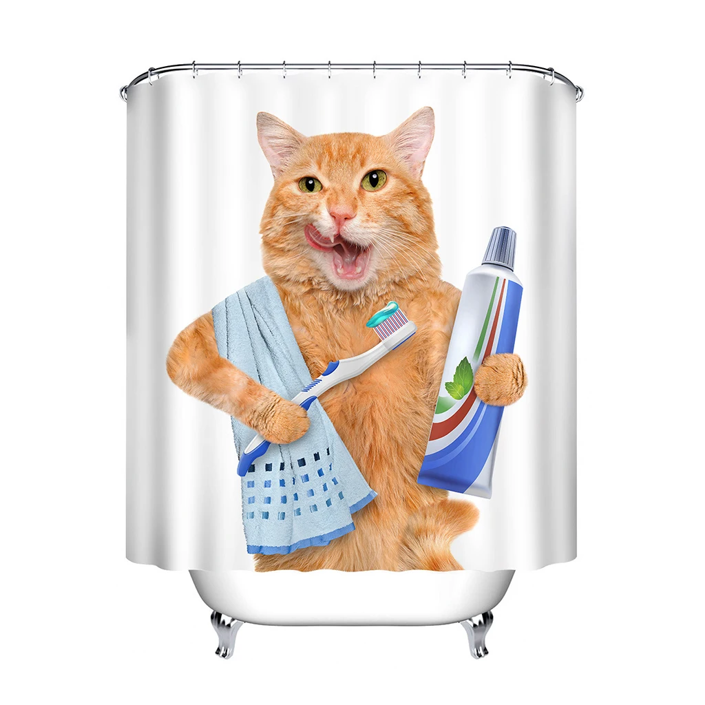 Special Offer Cute Cat 3D Printed Shower Curtain Waterproof Polyester Fabric Bath Curtain for Bathroom Curtain Decor with 12 Hooks 60*40 Mat Discount 0% Today!