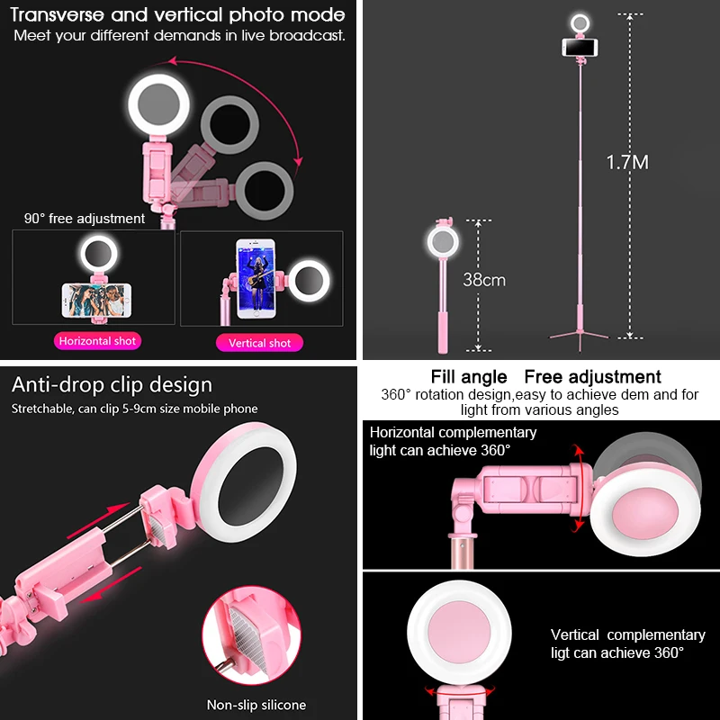 Best . (20% Off) Buy SAMTIAN Bluetooth 1.7M Selfie Stick Tripod With LED Ring Fill Light Phone Stand monopod 360 Rotation For Smartphone Mobile Photo Cheap Online.