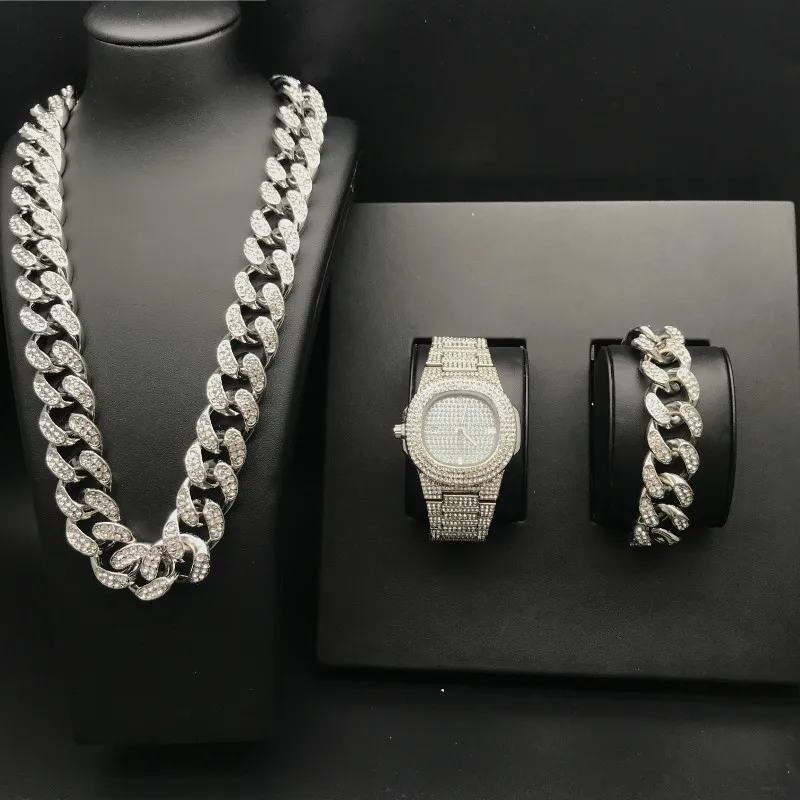 Best . (30% Off) Buy Luxury Gold Color Watch Crystal Miami Ice Out Cuban Chain Gold Silver Men Watch amp Necklace amp Bracelet Hip Hop jewerly set Price Online.