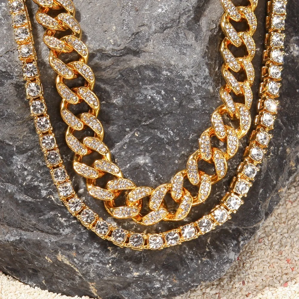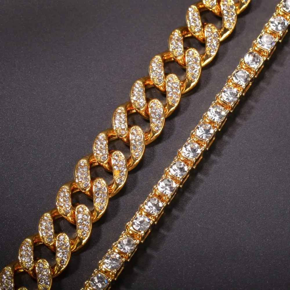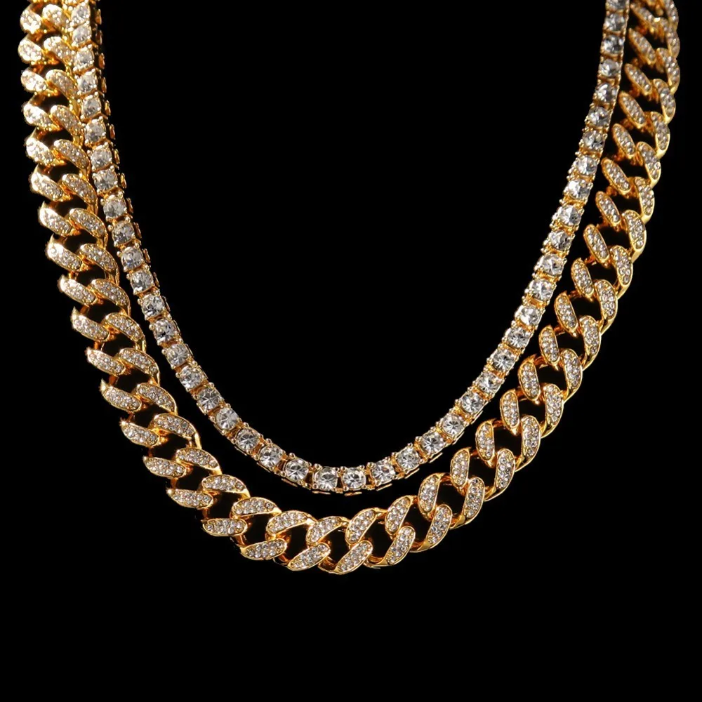 Best . (43% Off) Buy UWIN 2 Necklaces Fashion Hiphop Jewelry 13mm Cuban Link Chain With 5mm Iced Out Rhinestones Tennis Chains Gold Color Necklace Cheap Online.