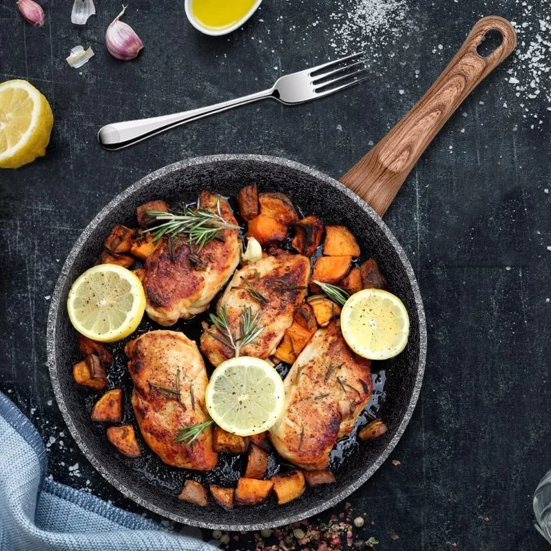 Best . (44% Off) Buy Thickening Medical Stone Non stick Frying Pan 20 28 CM Multi purpose Pancake Steak Pan No fumes Use for Gas Induction Cooker Price Online.