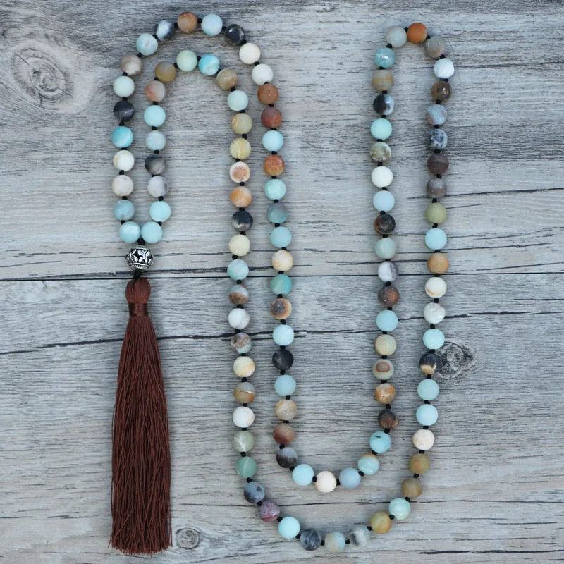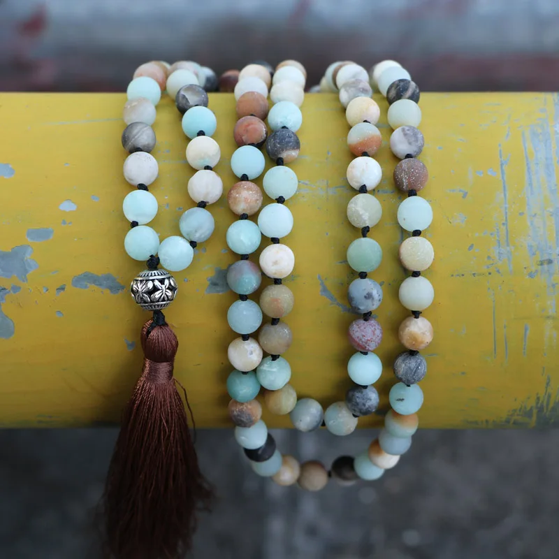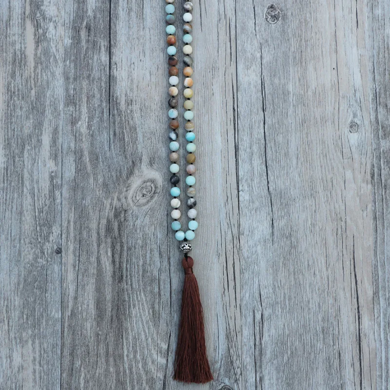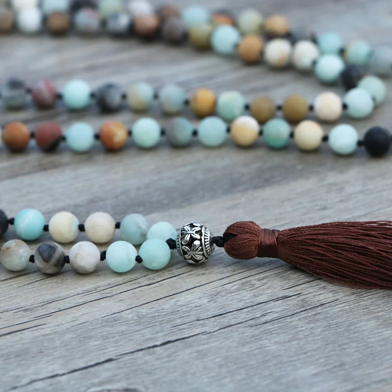 Special Offer EDOTHALIA 8MM Matte Amazonite Beads Necklaces Womens Yoga Gift Natural Stone Handmade Knotted Tassels Long Necklaces Discount 5% Today!