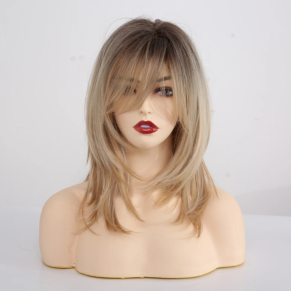 Special Offer Long Wavy Synthetic Wigs With Bangs For Women African American Cosplay Wigs Mixed Blonde Brown Natural Heat Resistant Fiber Wigs Discount 50% Today!