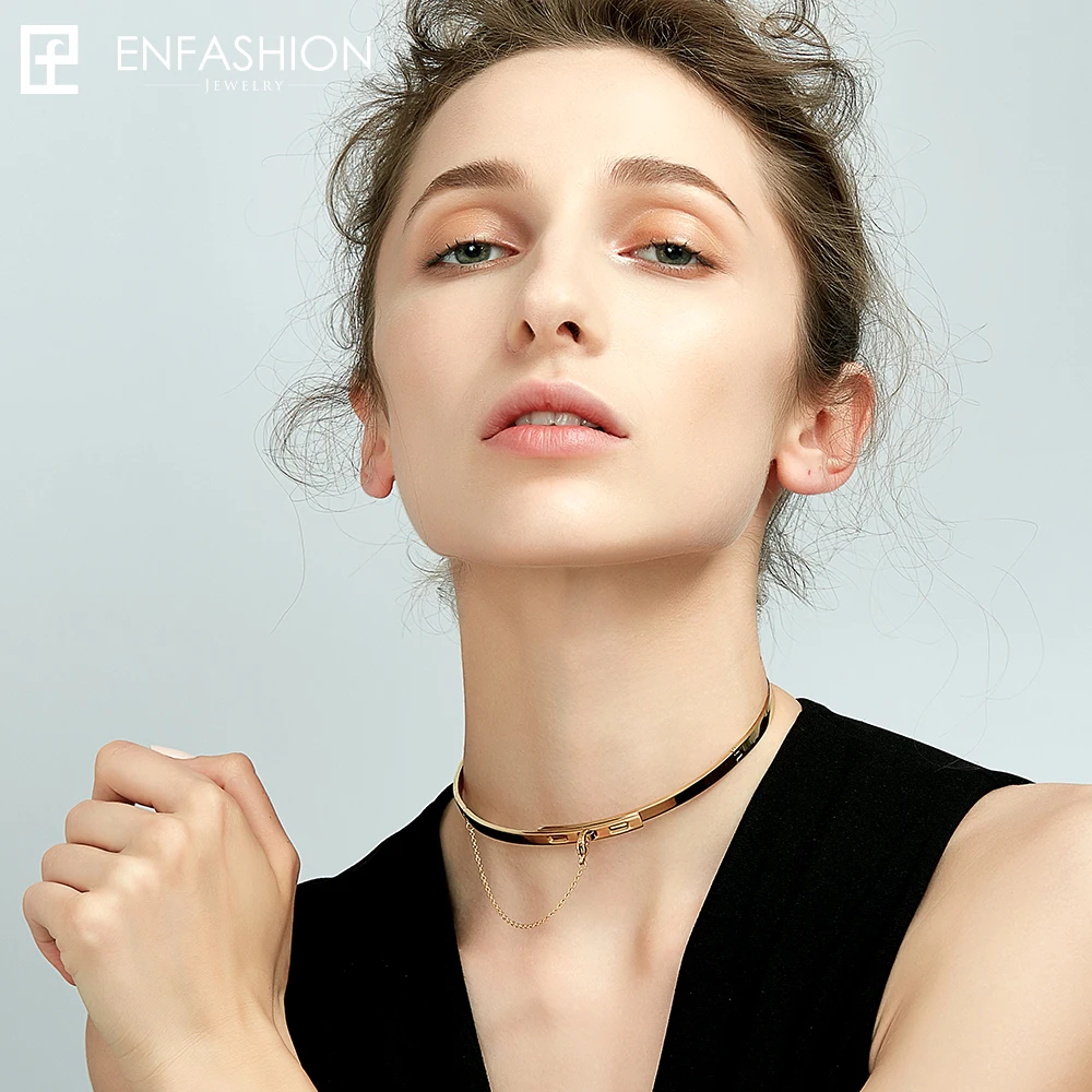 Special Offer Enfashion Safety Chain Chokers Necklaces Pendants Gold Color Necklace Stainless Steel Choker Necklace For Women Jewelry Collier Discount 20% Today!