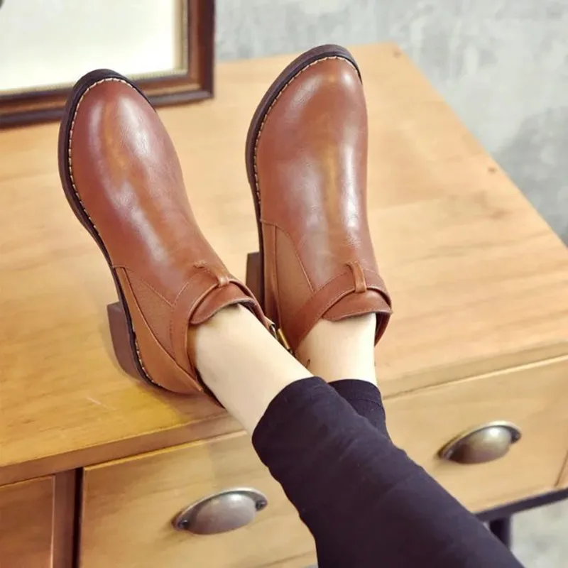 Special Offer Winter Boots Women Solid Color Middle Heel Female Martin Boots Buckle Strap Fashion Round Toe Ankle Patchwork All Match Discount 23% Today!