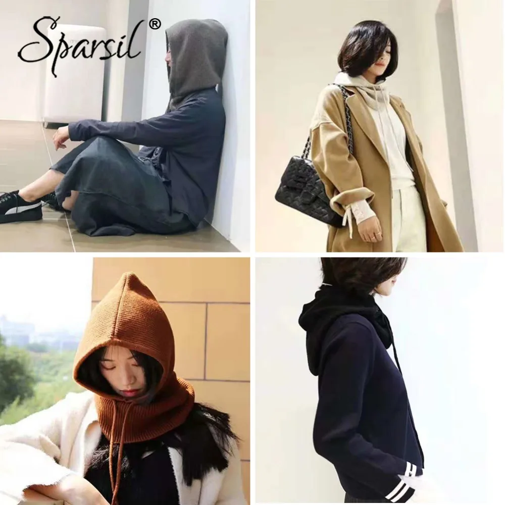 Special Offer Sparsil Men Women Cashmere Knitted Hat Scarf Hooded Collar Elastic Drawstring Winter All Match Adult Teen Thick Soft Neck Warmer Discount 45% Today!
