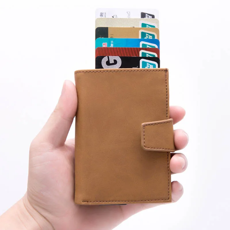 Special Offer 2019 HOT SALE Mini Credit Card Holder Men And Women Metal RFID Vintage Aluminium Box Crazy Horse PU Leather Fashion Card Wallet Discount 50% Today!