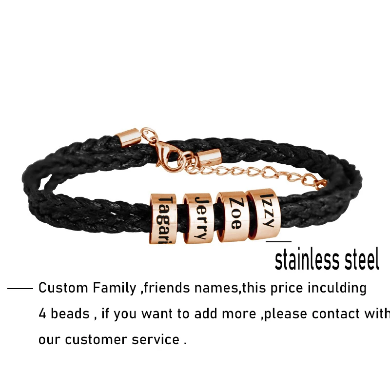 Best . (50% Off) Buy Personalized Family Names Bracelet Multiple Layers Braided Rope Titanium Steel Beads Leather Custom Bracelets Bangle For Man Price Online.