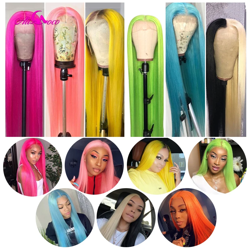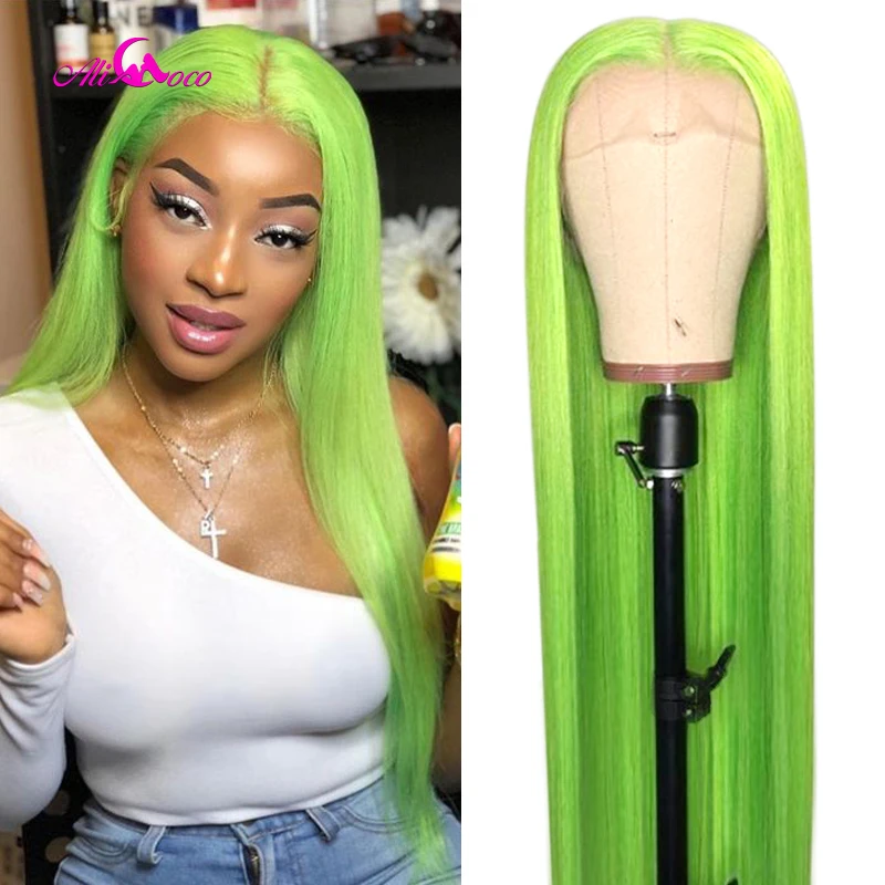 Special Offer ALI Coco 150% Green Human Hair Wig Brazilian Remy Straight Yellow Lace Front Wig Pink Red Light Bule Purple Ombre Wigs For Women Discount 52% Today!