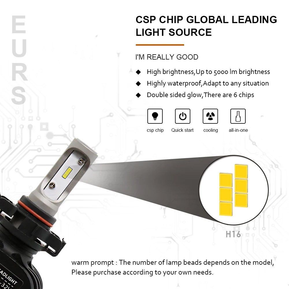 Special Offer EURS(TM) 2PCS S1 H16 Eu LED Car Headlight Bulbs 50W 6500K 8000Lumen H4 H13 9004 9007 High Low Beam Headlight H7 H11 Fog Light Discount 18% Today!