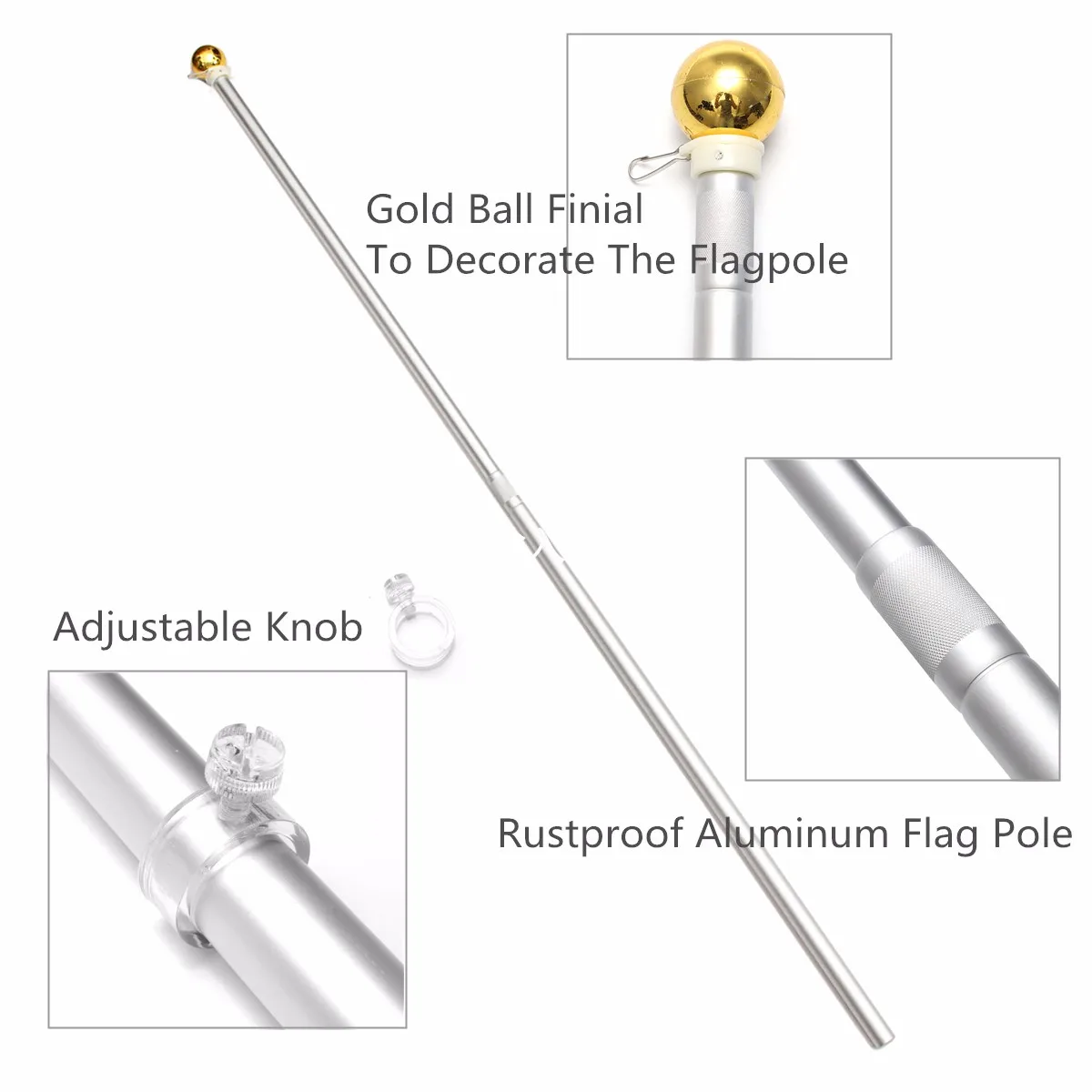Special Offer Aluminum 5FT Metal Adjustable Telescoping Flag Pole Portable Telescopic Extendable Flagpole Discount 20% Today!