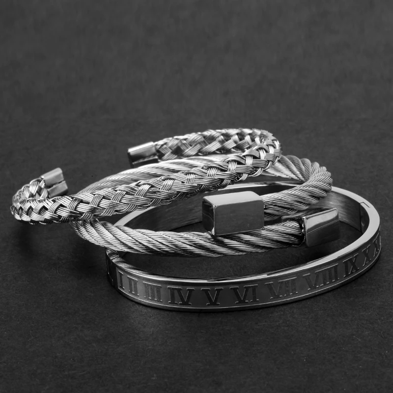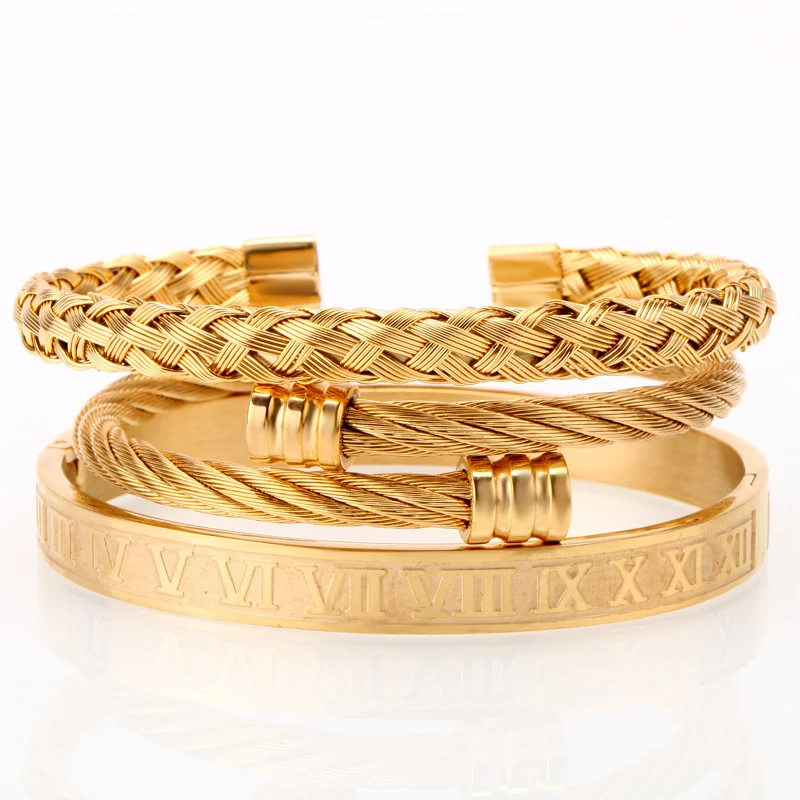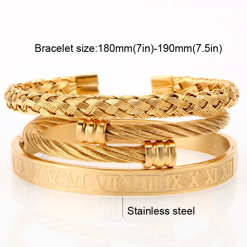 Best . (23% Off) Buy Mcllroy 3pcs set Luxury Gold Silver 316L Stainless Steel Wristband Braiding Bangles Opening Cuff Bracelets For Men amazing price Price Online.