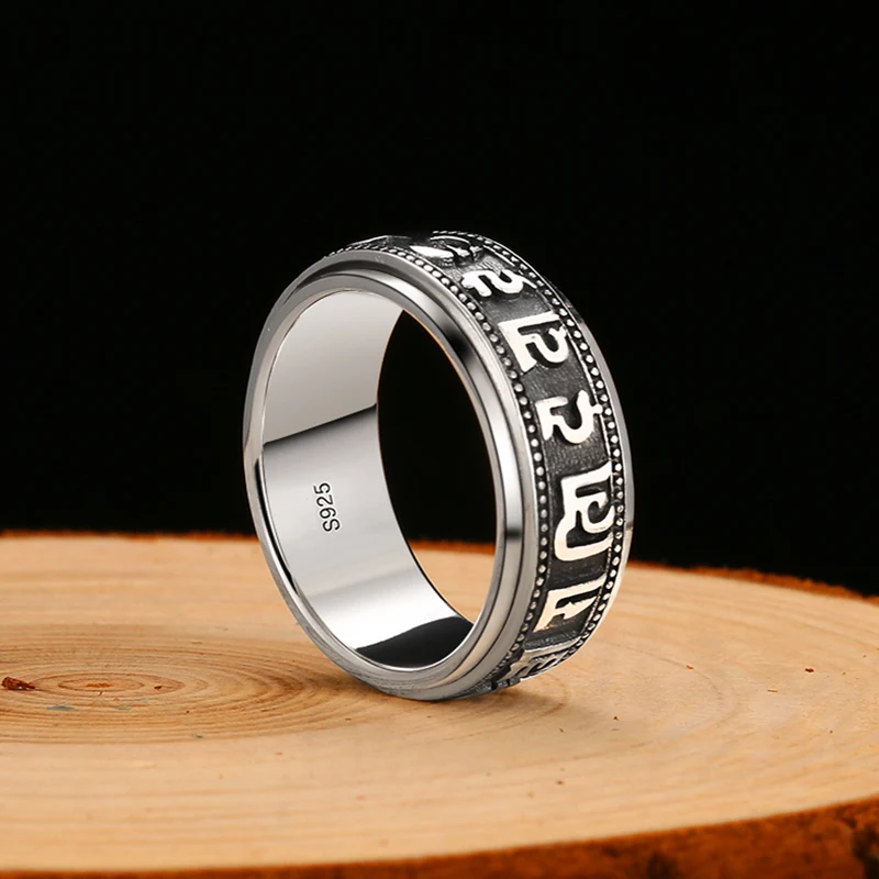 Special Offer ZABRA Punk Jewelry For Men 925 Sterling Silver Spinner Ring Vintage Six Words Mantra Mens Signet Rings Discount 30% Today!