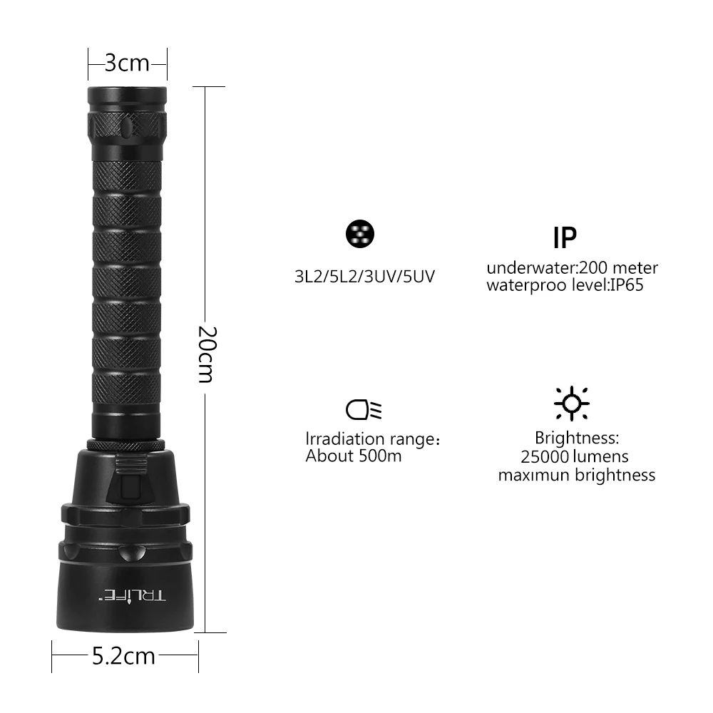 Special Offer Diving for LED Flashlight Torch 5*T6 L2 Dive Torch 200M Underwater Waterproof Tactical Professional Dive Lantern Lamp Discount 39% Today!