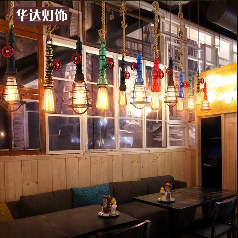 Special Offer Individual American retro loft industrial Iron pendant light meal living room single head bar pipe rope hanging lighting Discount 40% Today!