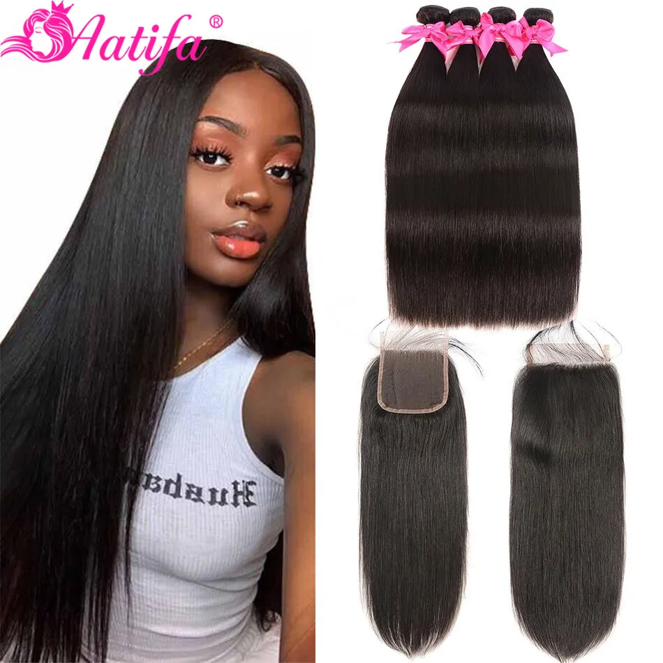 Special Offer Aatifa Brazilian Straight Hair Bundles With Closure Human Hair Bundles With Closure Remy Bundles With Closure Hair Extension Discount 50% Today!