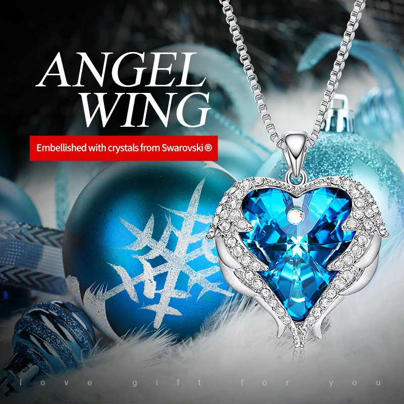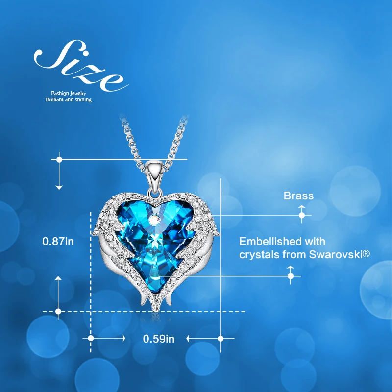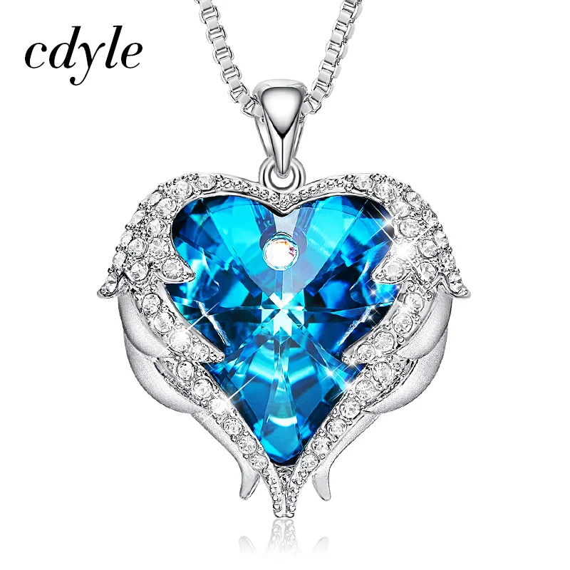 Special Offer Cdyle Fashion Women Copper Material Necklace with Colorful Crystal Angel Wings Heart Pendant Necklace Birthday Party Gift Discount 50% Today!