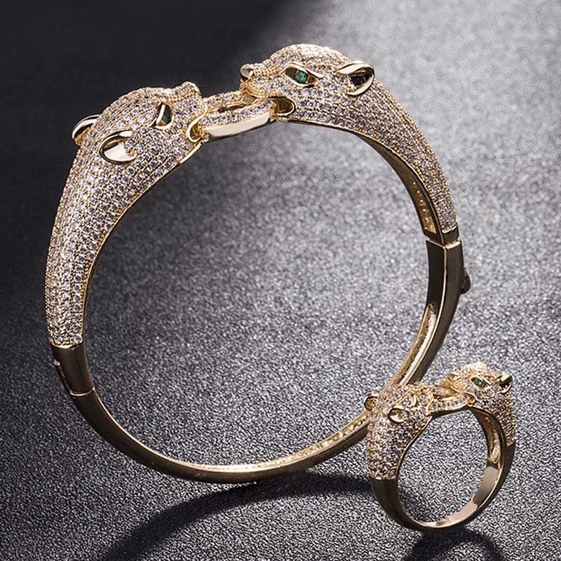 Special Offer Statement Two Leopard Animal Bangle For Men Jewelry Brand cubic Zirconia Love Bangle Anel Men Anniversary Jewelry Discount 50% Today!