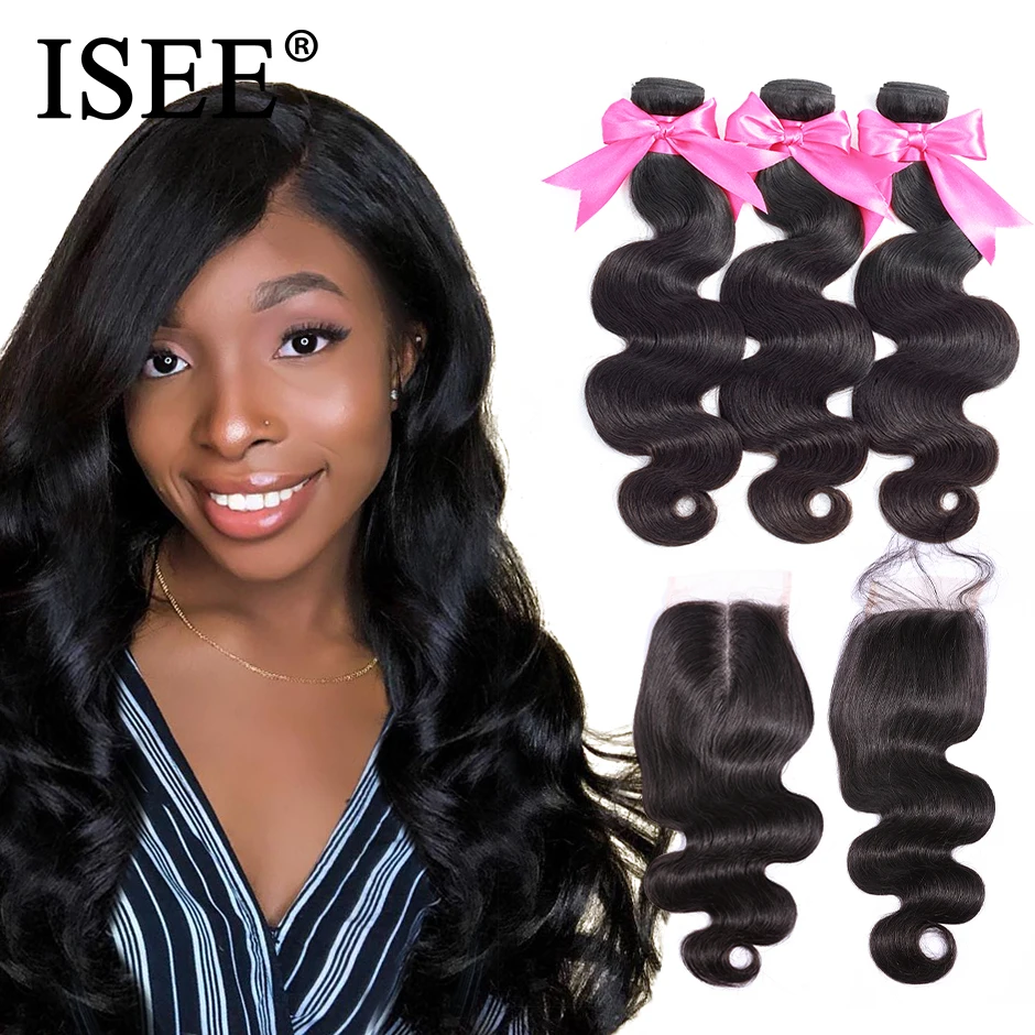 Special Offer Body Wave Human Hair Bundles With Closure ISEE HAIR Bundles With Frontal Brazilian Body Wave Hair Weave Bundles With Closure Discount 53% Today!