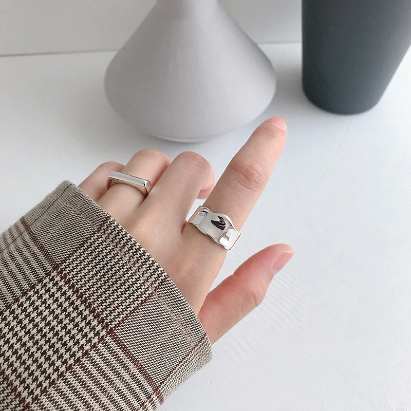Best . (20% Off) Buy SHANICE 925 sterling silver European and American jewelry simple irregular concave convex ring fashion tide flow open ring Cheap Online.