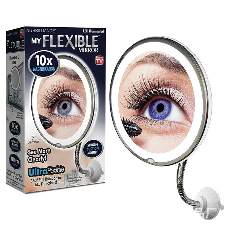 Special Offer 360 Degree Flexible Mirror Makeup Mirror with LED Light Vanity Mirror 10X Magnifying Miroir Bathroom Bedroom Lamp Night Light Discount 21% Today!