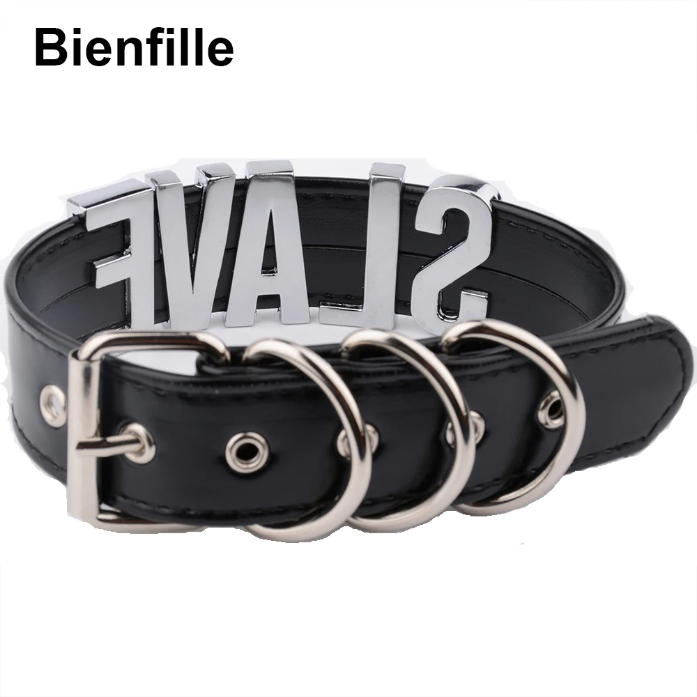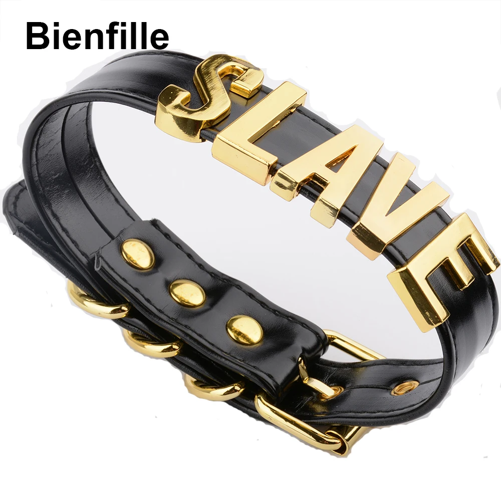 Special Offer Fashion Gold Men Necklace Women Girl Silver Slave Name Word Customized Collar Buckle Necklace Black PU Leather Kawaii Jewelry Discount 39% Today!