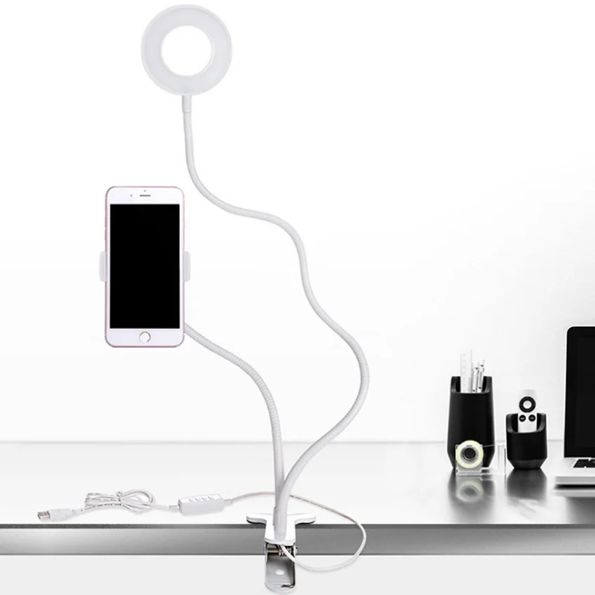 Special Offer Flexible Monopod Mount Bracket with LED Ring Flash Light Lamp Tabletop Stand Tripods with Mobile Phone Holder for Video Bloggers Discount 40% Today!
