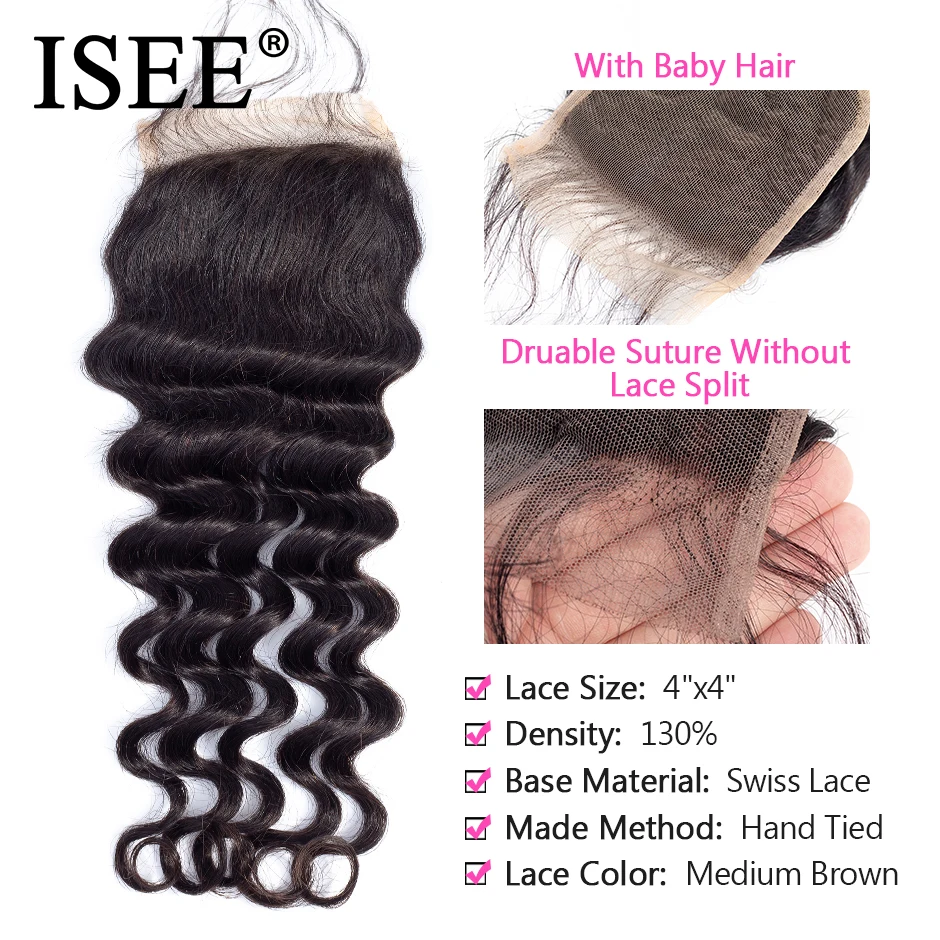 Special Offer ISEE HAIR Brazilian Loose Deep Bundles With Closure 100% Remy Human Hair Bundles With Closure 3 4 Bundles Hair With Closure Discount 50% Today!