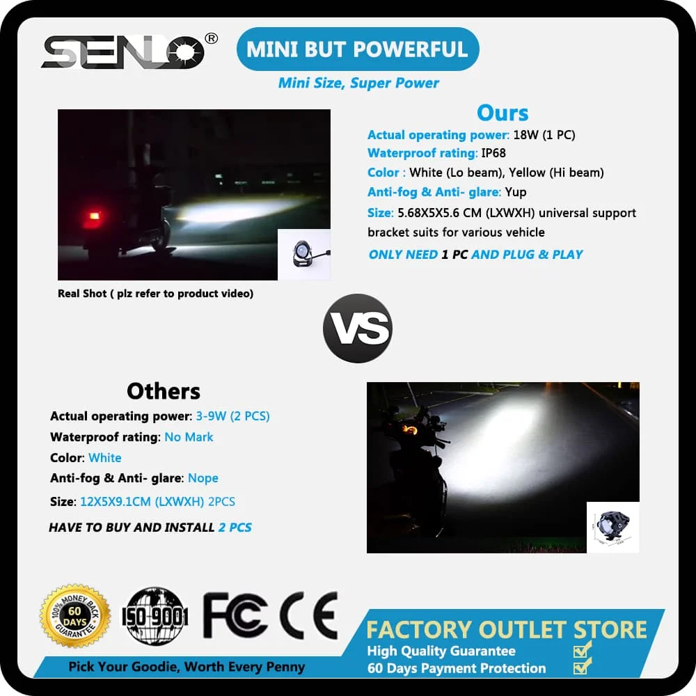 Best . (0% Off) Buy 2019 new high power spotlight small driving hi lo headlight white yellow led working light Motorcycle Motorbike Scooter Headlamp Price Online.