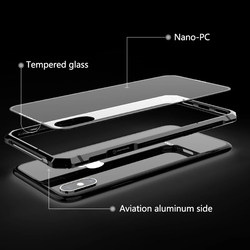 Special Offer For iPhone X 7 8 Plus Case for iPhone 11 Pro Max Black Protective Aircraft Bumper Metal Screw Cell Phone Case with Transparent Back Tempered Glass Discount 0% Today!