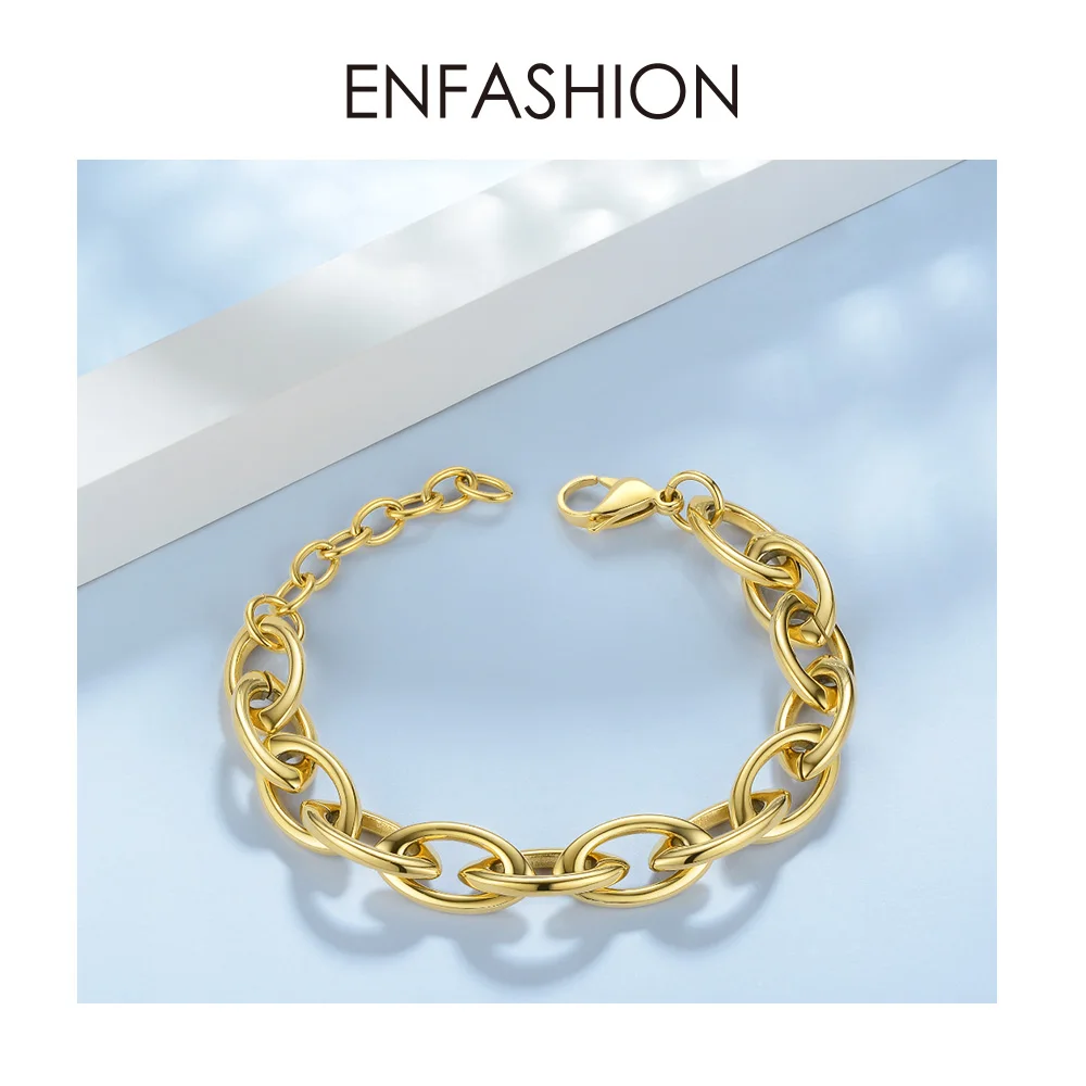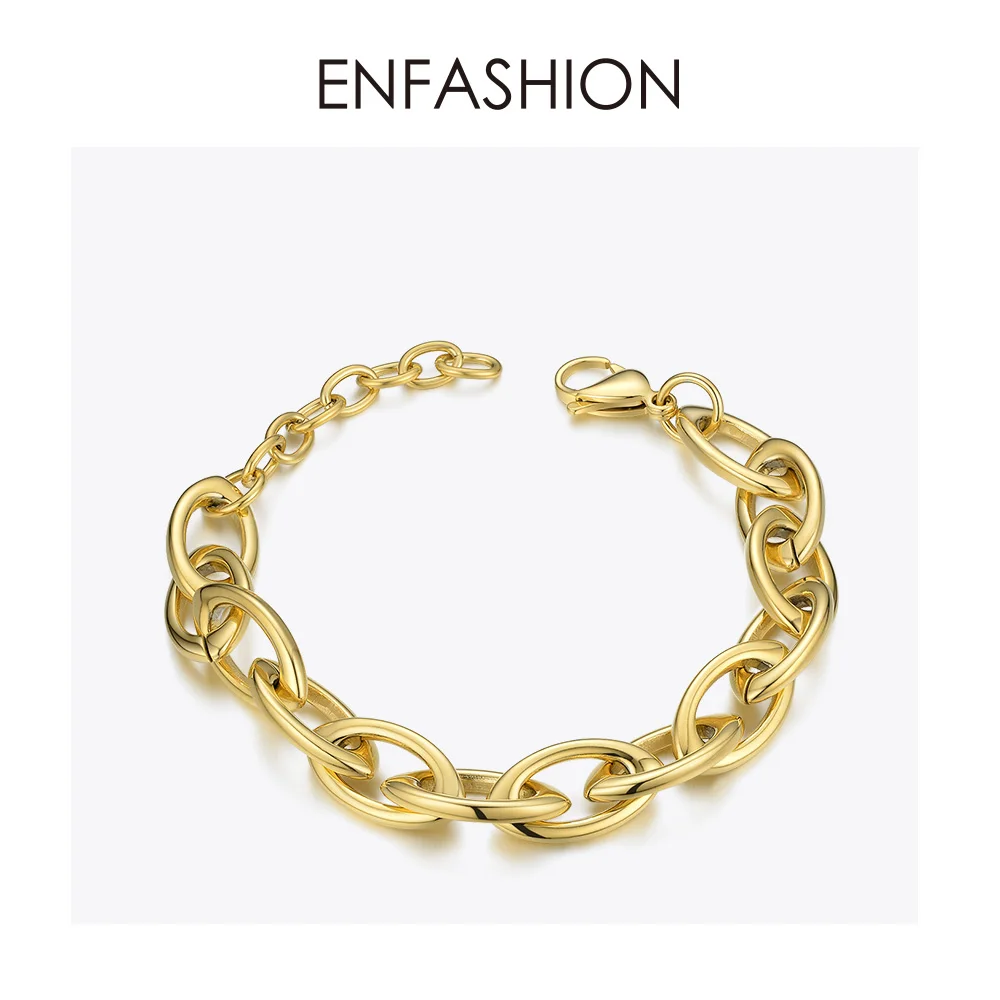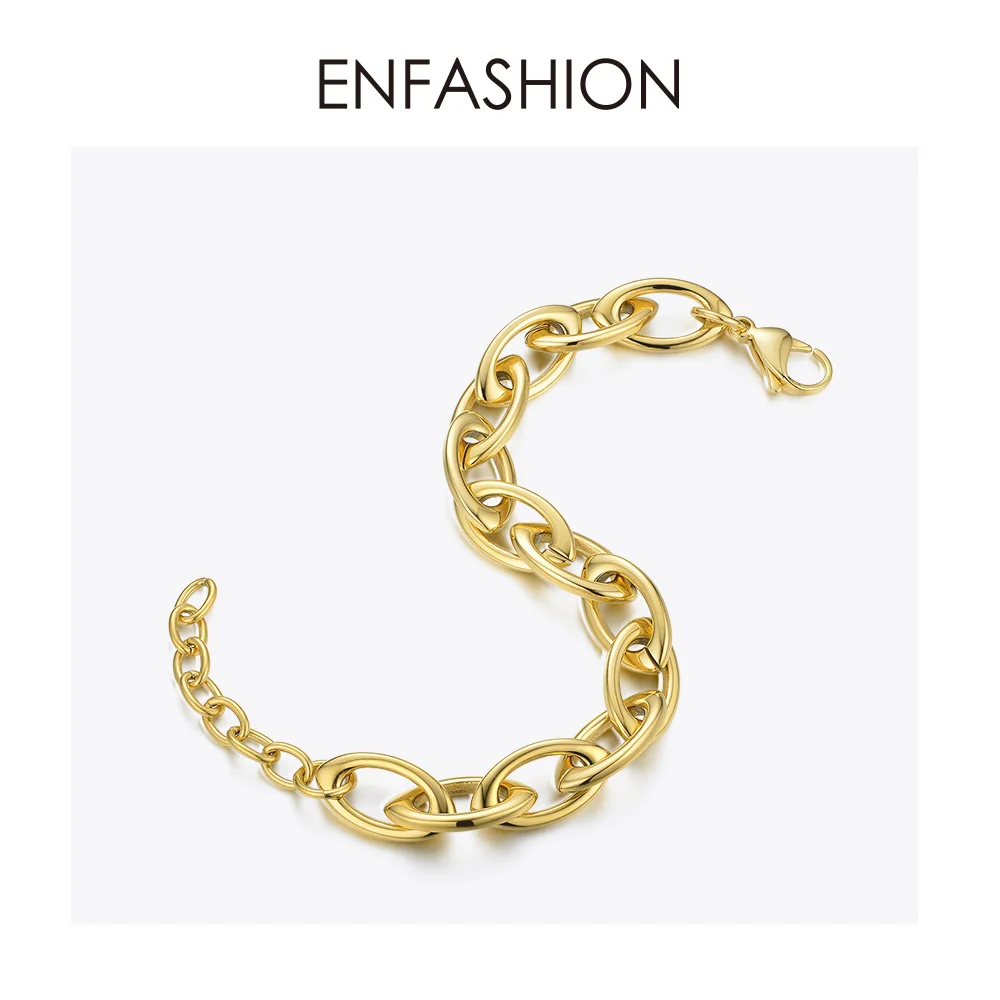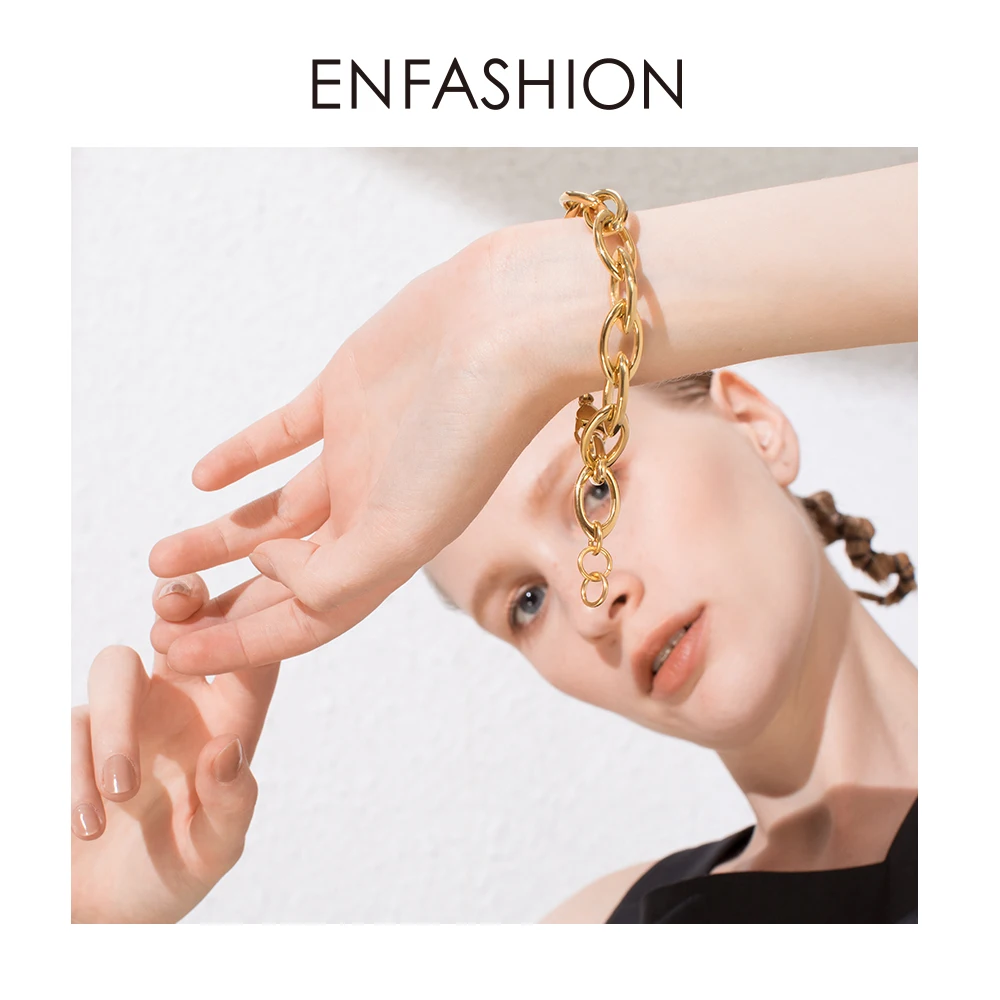 Special Offer ENFASHION Punk Link Chain Bracelets Bangles For Women Gold Color Stainless Steel Thick Chain Bracelet Fashion Jewelry BM192012 Discount 15% Today!