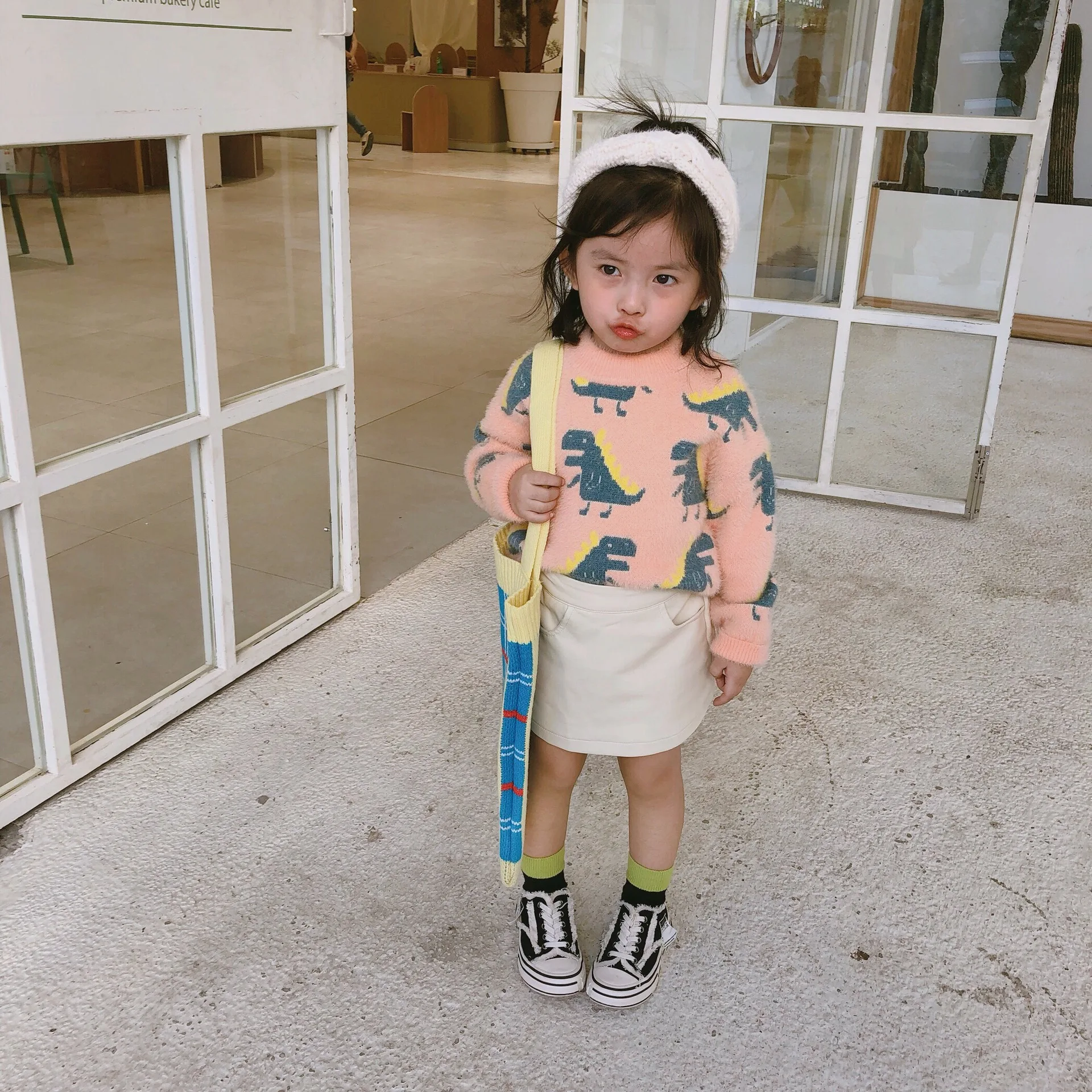 Special Offer 2019 Autumn and Winter New Arrival Korean style cotton dinosaur pattern all match thickened casual sweater for sweet baby girls Discount 18% Today!