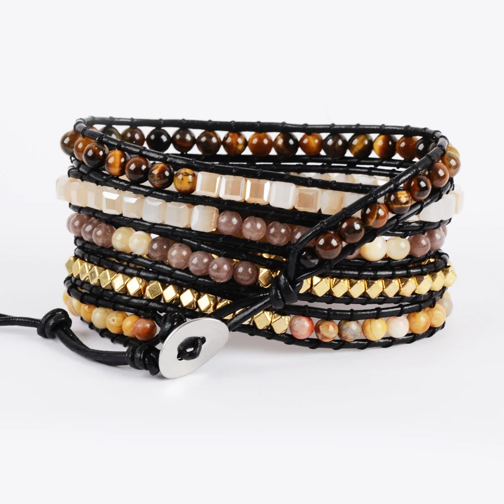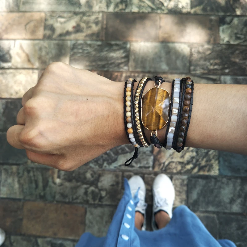Best . (18% Off) Buy Tiger Eye 5 Strands Wrap Bracelets Handmade Bohemian Gems Stone Leather Bracelet For Men Vintage braid Bracelet Dropshipping Price Online.
