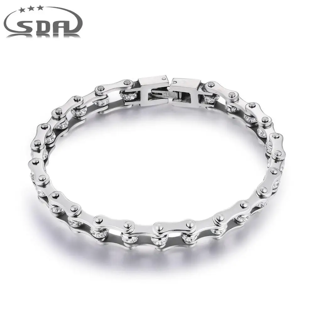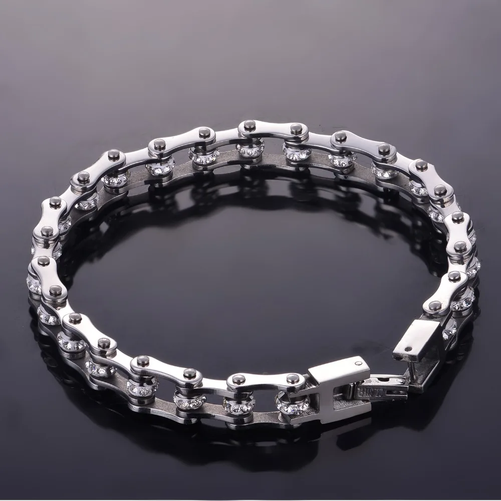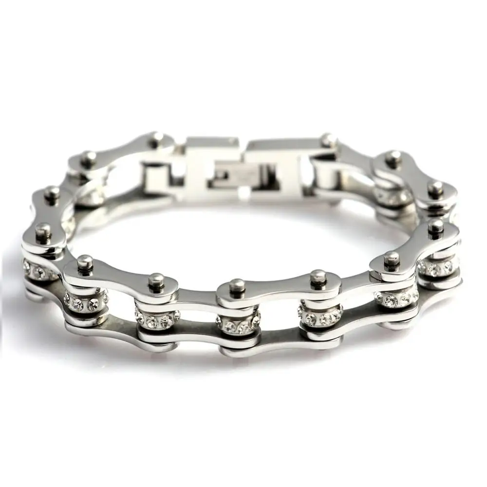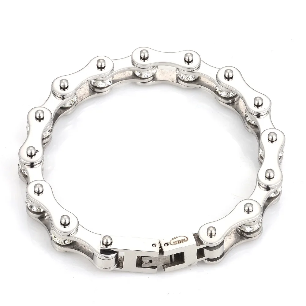 Special Offer Pure Neutral Classic 316L Stainless Steel Bracelets Crystal Motorcycle Chain Silver Bracelets 10mm Wide 17CM~22CM Length YM001 Discount 20% Today!