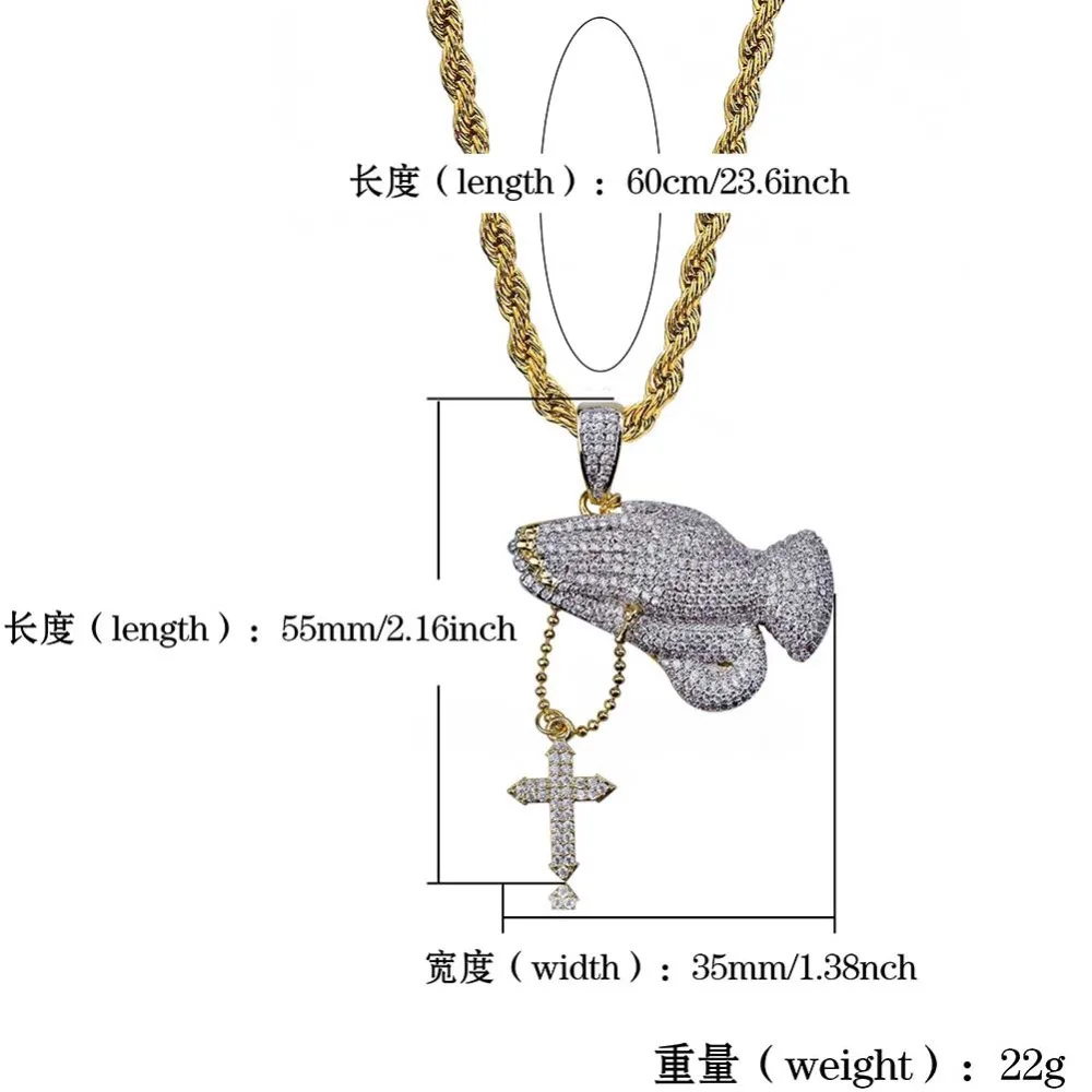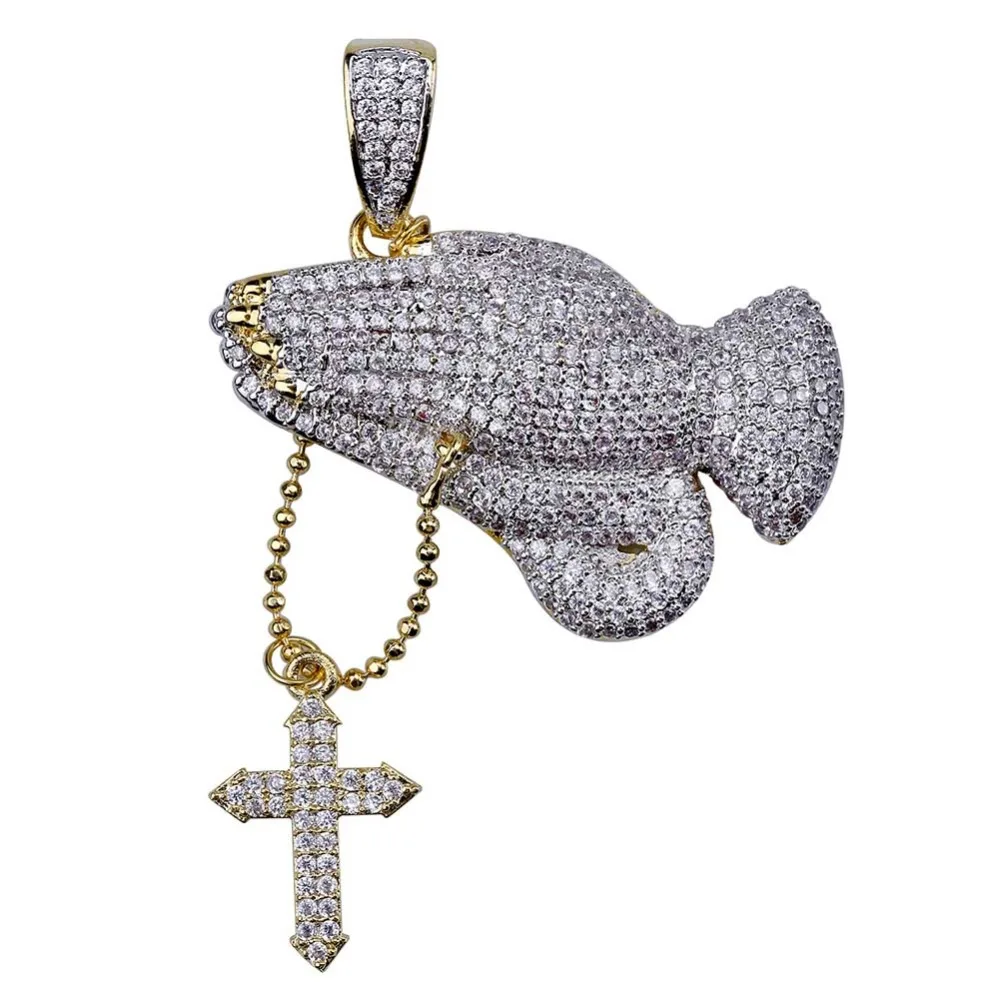 Special Offer Iced Out Praying Hand Pendant Necklace With Cross Mens Women Gold Silver Color Hip Hop Charm Jewelry Necklace Chain For Gifts Discount 30% Today!