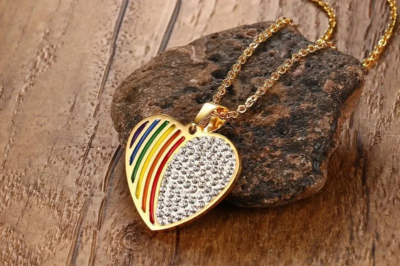 Best . (4% Off) Buy FXM HBB20 stainless steel necklace hot sell popular single women 30mm rainbow heart shape 3 color lover gift women jewelry Price Online.